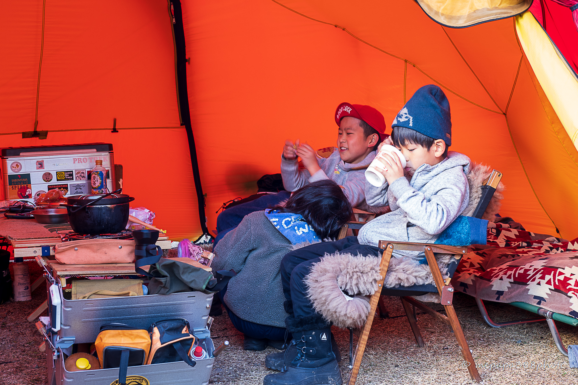 お正月キャンプでも重宝した陣幕。この日が初張りでした。